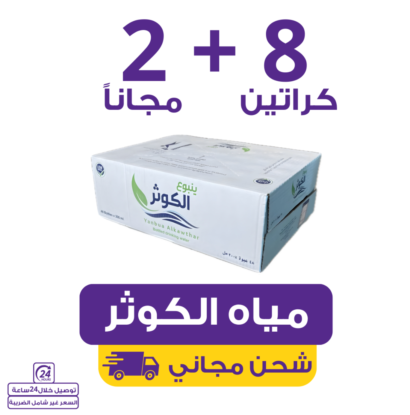 مياه الكوثر 8 كراتين 200 مل (48 عبوة) + 2 مجاناً